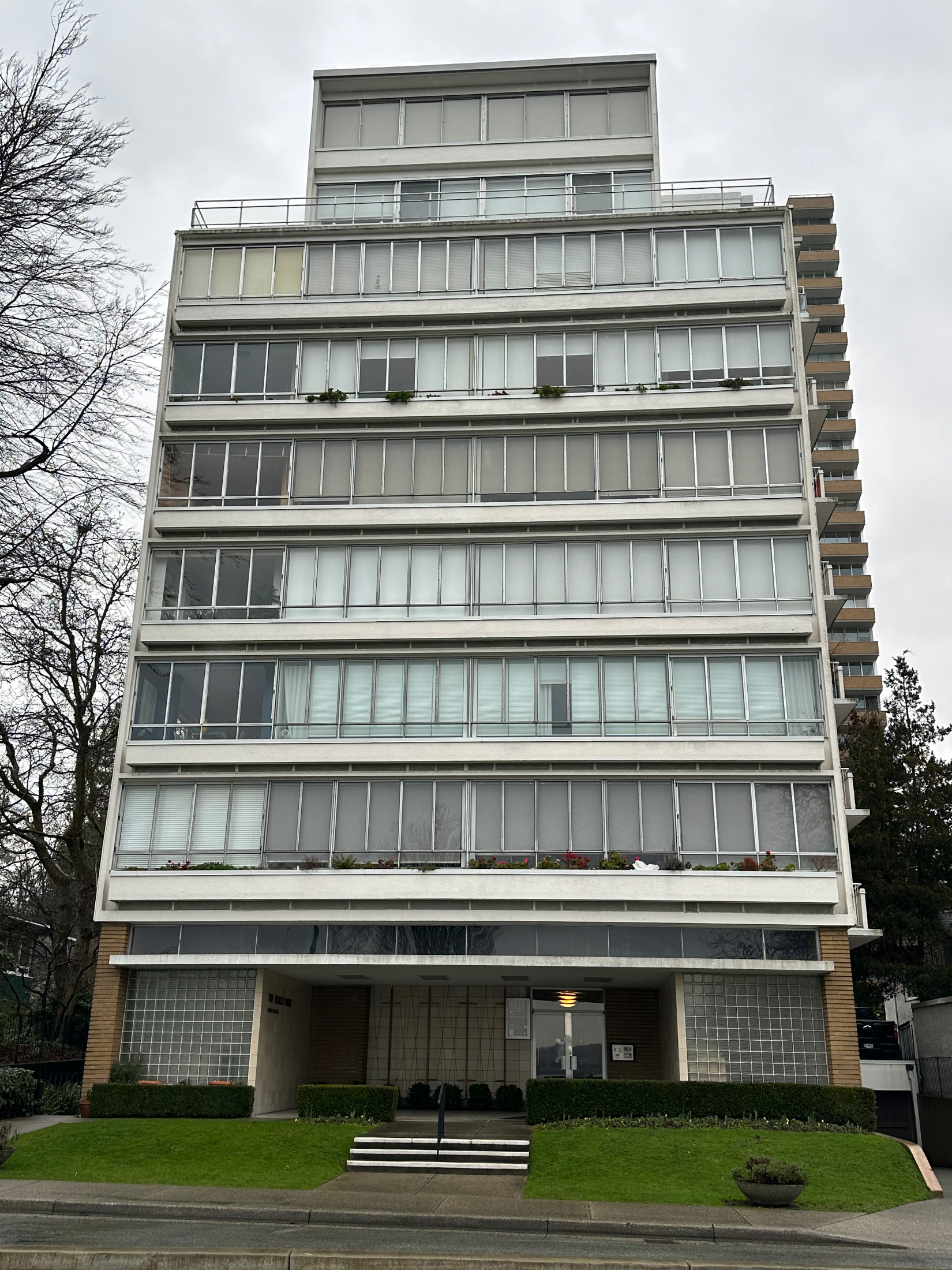 At the very edge of the block, standing tall since 1958, is Beach Park. This 9-story building is a quintessential example of the West End